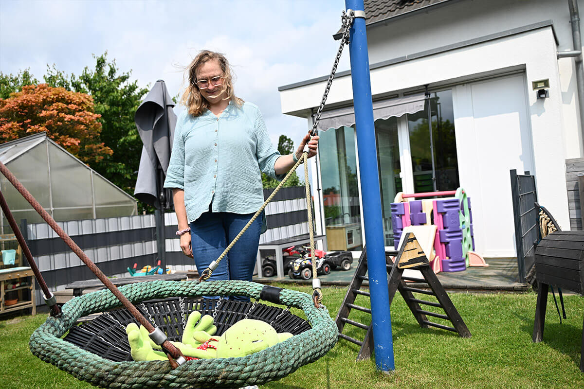 Das Highlight unseres Gartens ist unsere Vogelnest-Schaukel, die immer gerne genutzt wird.