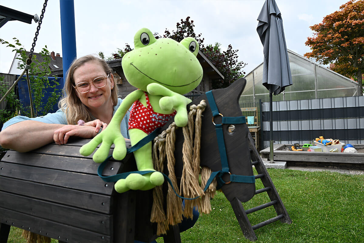 In unserem Garten gibt es viel zu entdecken: Platz zum Toben, Spielen und Erleben. Der Sandkasten verwandelt sich manchmal in eine Backstube für leckeren Kuchen oder in eine Baustelle. Rutschfahrzeuge und ein Trampeltrecker warten darauf, benutzt zu werden.