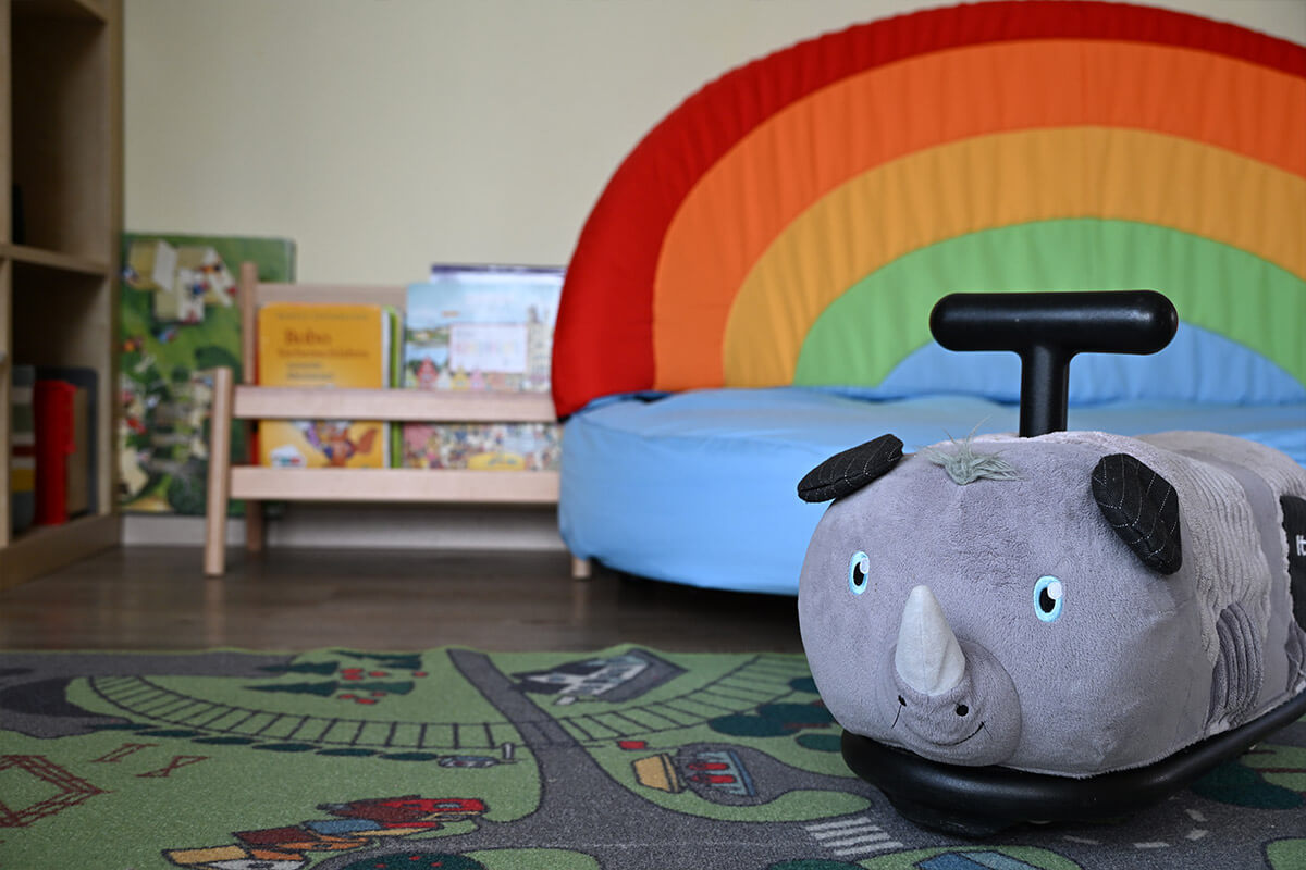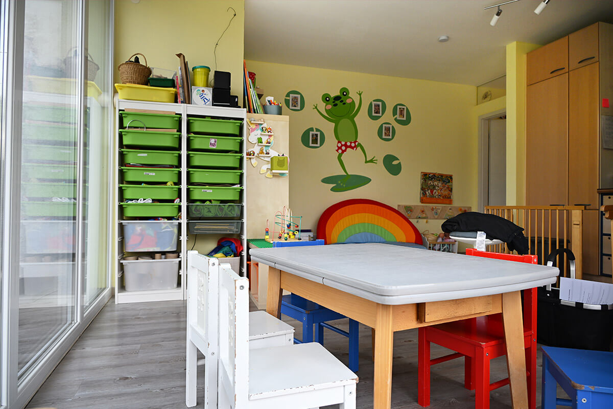 In unserer separaten Einliegerwohnung betreue ich bis zu fünf kleine Menschen. Die Kinderwohnung ist auf die Bedürfnisse der Kinder eingerichtet, sodass sie selbsttätig und -initiierend „arbeiten“ können. Ebenso ist sie kindersicher sowie kinderfreundlich eingerichtet.